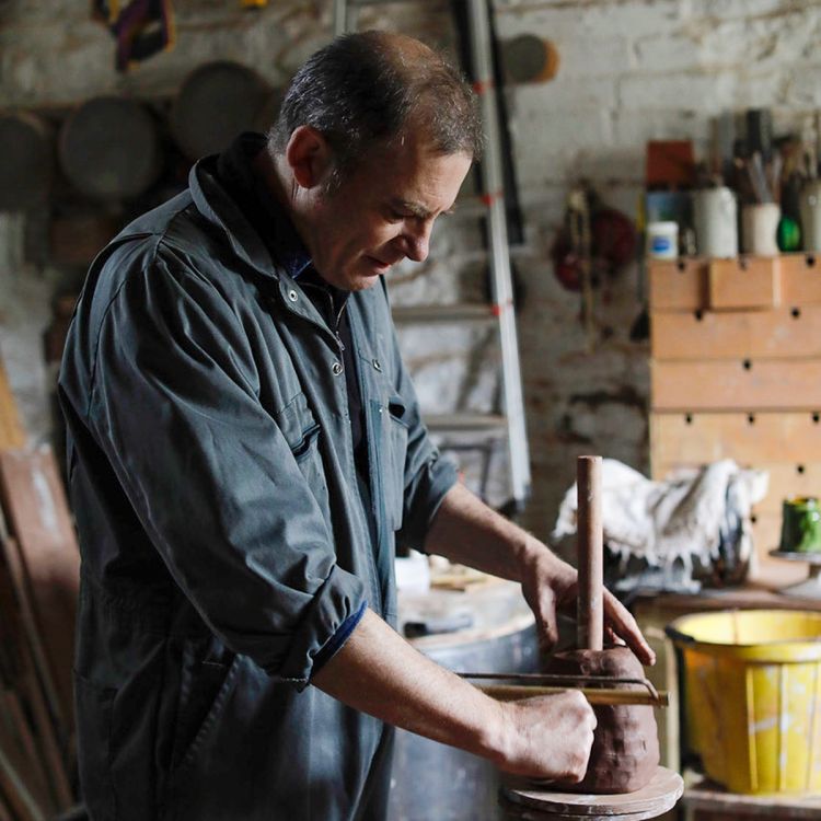 Deiniol will be explaining how and why he works with clay that is heavily grogged with stone inclusions. He will be demonstrating this by attempting to throw and sculpt one of his ‘Vessel’ forms in front of a live audience.