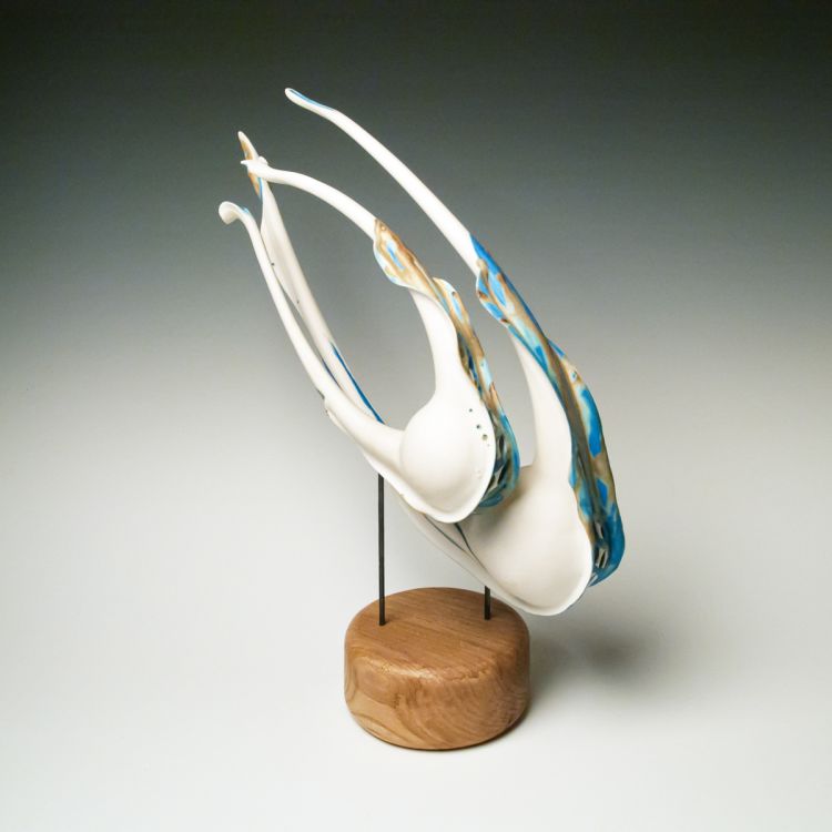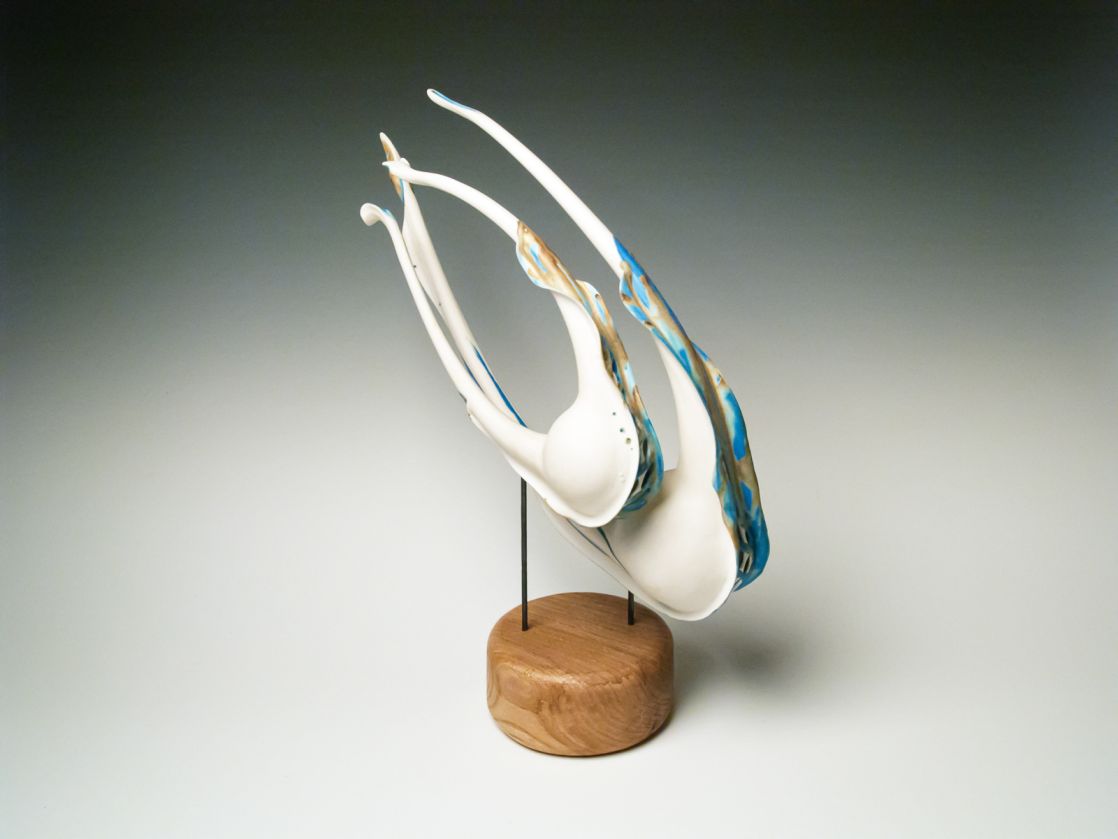 My work is predominantly with porcelain. I am excited by the movement created within bodies of water, exploring infinitesimal ideas posed by the sea and it’s affect on nature. In each piece I aim to capture and convey feelings of strength and serenity, with a sense of other worldly freedom.
