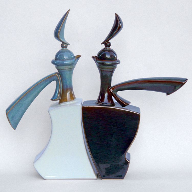 My creativity is driven by a passion for colour, shape and impression of momentum. Initially inspired by dancing, I explore the phenomenon of complimentary counterparts’ independence and unity by deliberate juxtaposition of geometrically stylised gendered vessels, conceptualized in pairs.