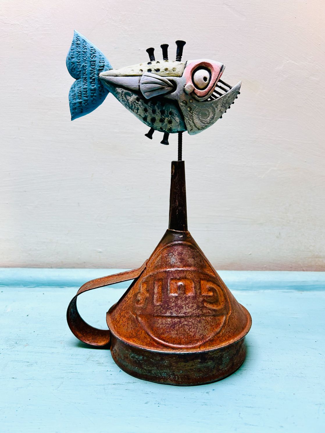 My work is an assemblage of ceramics and found objects. It is maritime based depicting vessels, architecture and aquatic animals.