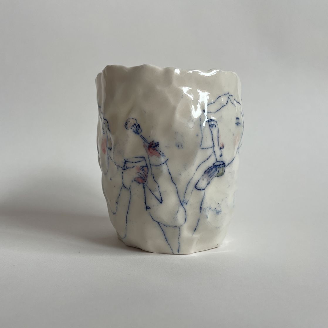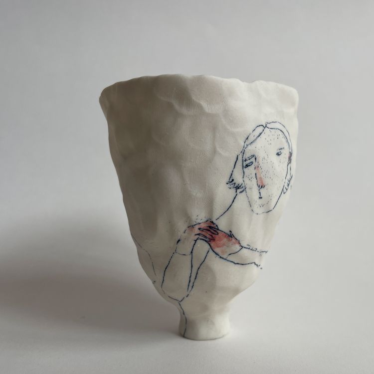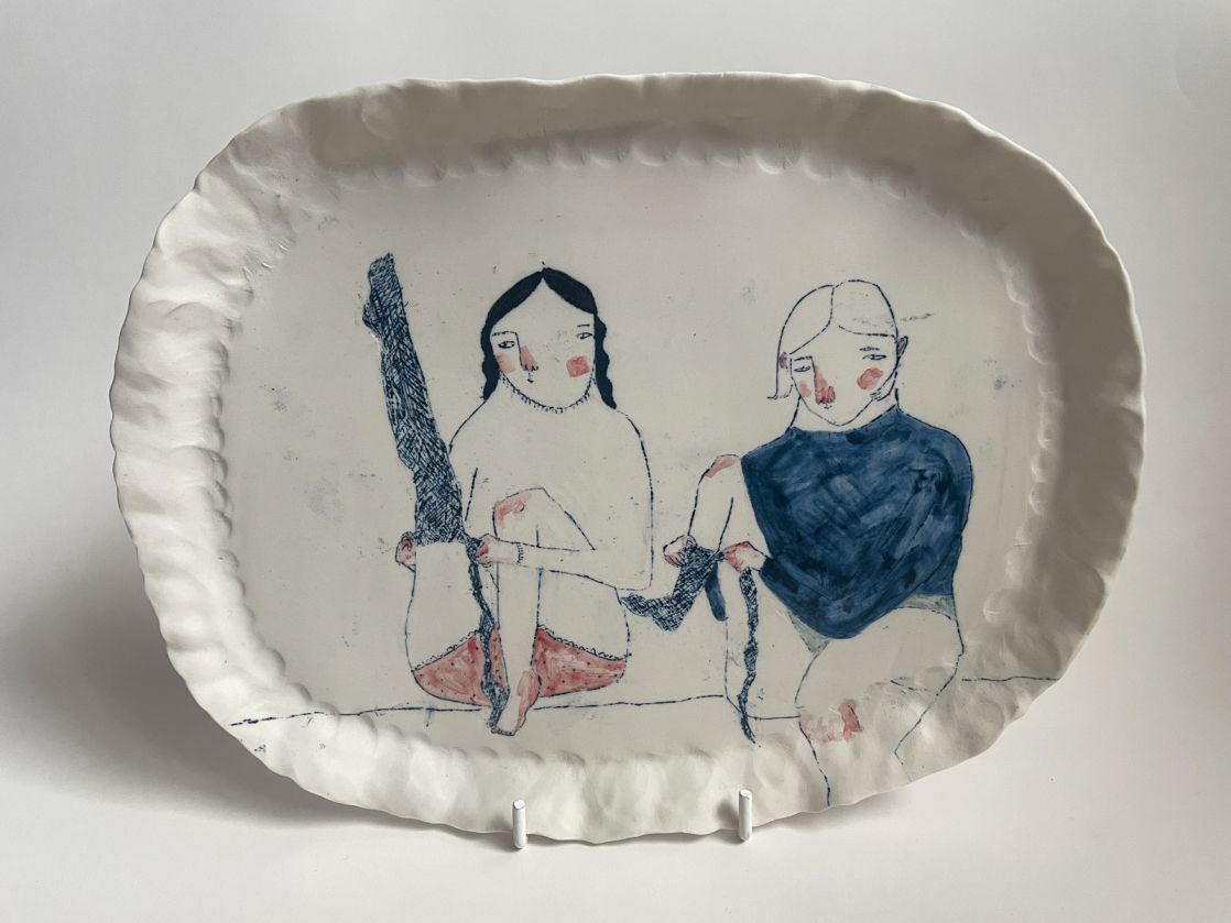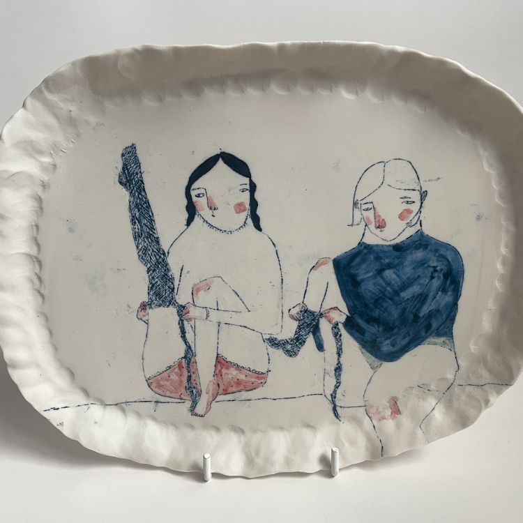 Working in porcelain and stoneware, I combine drawing, painting and printmaking to build narrative on the surface of decorative hand built ceramics. Fingerprints, brush strokes and making marks are intentionally left exposed to accentuate the relationship between vessel and subject.